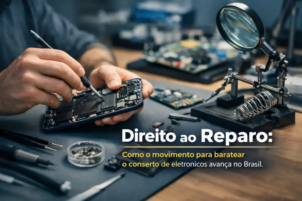 Seu celular quebrou e o conserto custa uma fortuna? O Direito ao Reparo está avançando no Brasil para mudar essa realidade e baratear o conserto de eletrônicos.